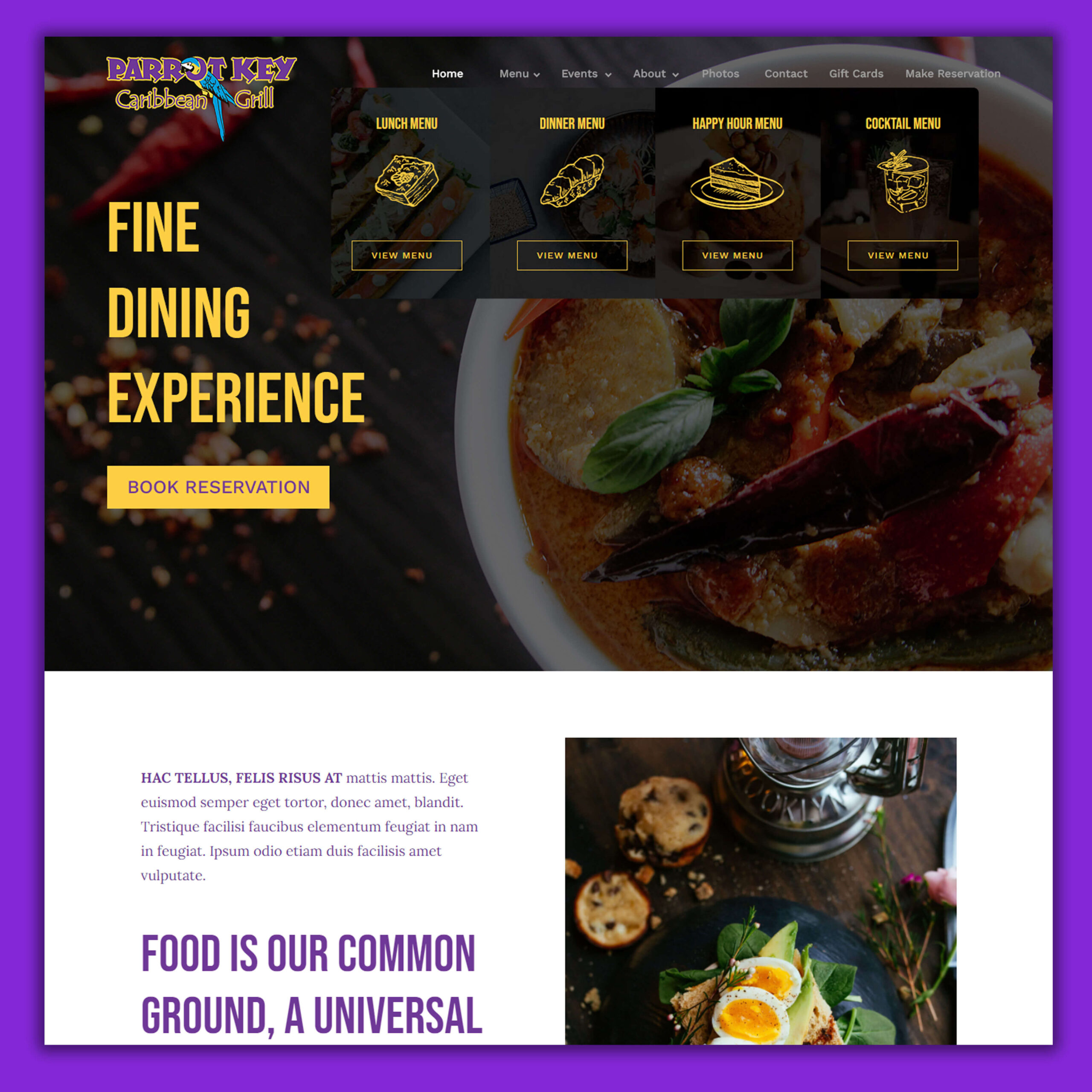 Fine dining experience platform with online reservations and multi-menu management system.